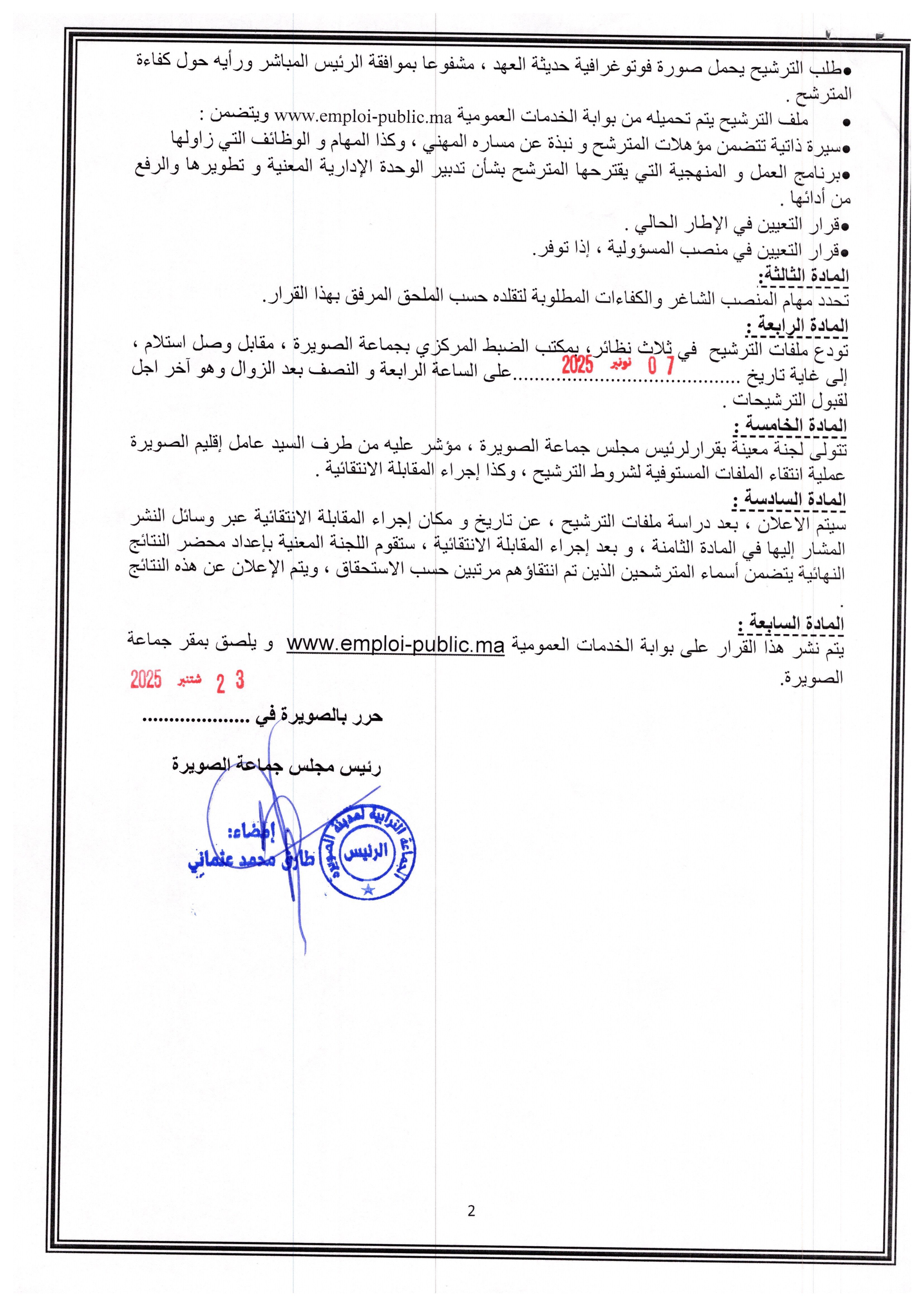 فتح باب الترشيح لشغل منصب مدير المصالح بجماعة الصويرة